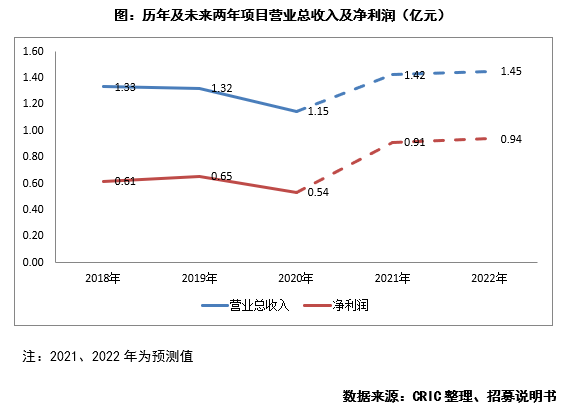 本次入池的資產項目為萬海大廈及萬融大廈,2020年底的評估價值共25.28億元。2018至2020年末,項目公司營業總收入分別為1.33、1.32和1.15億元;凈利潤分別為6137萬元、6536萬元和5352萬元。2021至2022的預測投資人凈現金流分派率分別為4.1%、4.17%;資本化率(Cap Rate)分別為4.45%、4.56%。