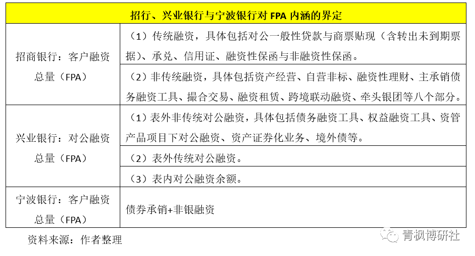 (1)招行與興業銀行均將FPA界定為對公客戶融資總量,即FPA是針對公司客戶提出的概念。