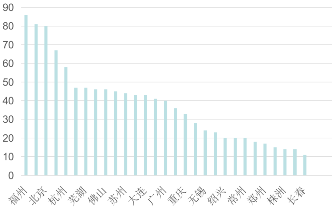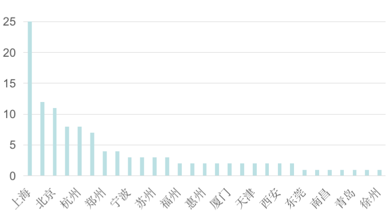 圖:2021年典型城市商業(yè)項目數量(個)
