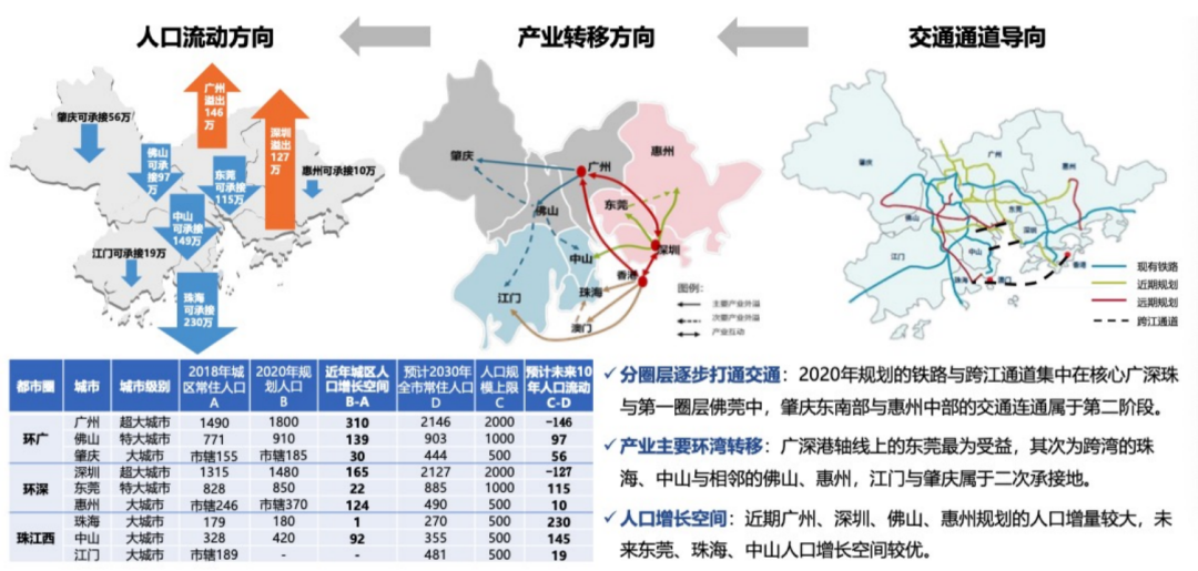 除了城市輪動、市場輪動的周期特征之外,商業(yè)地產最為關注的應該是“人”。我們依照“消費看人口、人口看產業(yè)和交通”的邏輯來分析珠三角城市的商業(yè)投資價值。