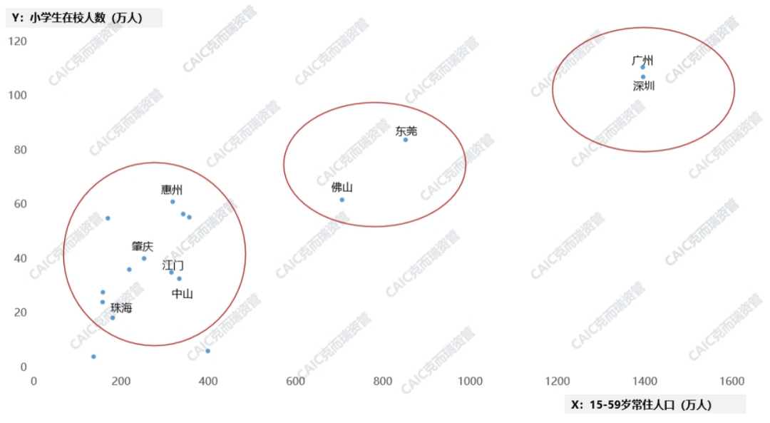 從人口基數來看,深圳為人口流入最多的廣東城市;廣州常住人口最多,同時也有穩(wěn)定的人口流入;東莞佛山依然位于第二梯隊,遠超其他三四線城市;肇慶整體人口流失。從人口結構來看,廣深小學生人數最多,消費“流量”穩(wěn)定,且青年人口居多,消費活力充足;東莞佛山次之,其他城市較弱,整體人口格局未變。