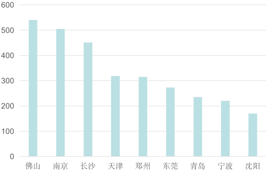 從項目分布上看,珠三角城市商業(yè)項目高度集中于廣深,東莞、佛山處于第二梯隊。佛山:2020年佛山新開業(yè)項目體量排全國第三,在華南僅次于廣州,2021年佛山新開購物中心39家,領跑廣東,新增供應252.1萬㎡,延續(xù)市場競爭白熱化狀態(tài)。