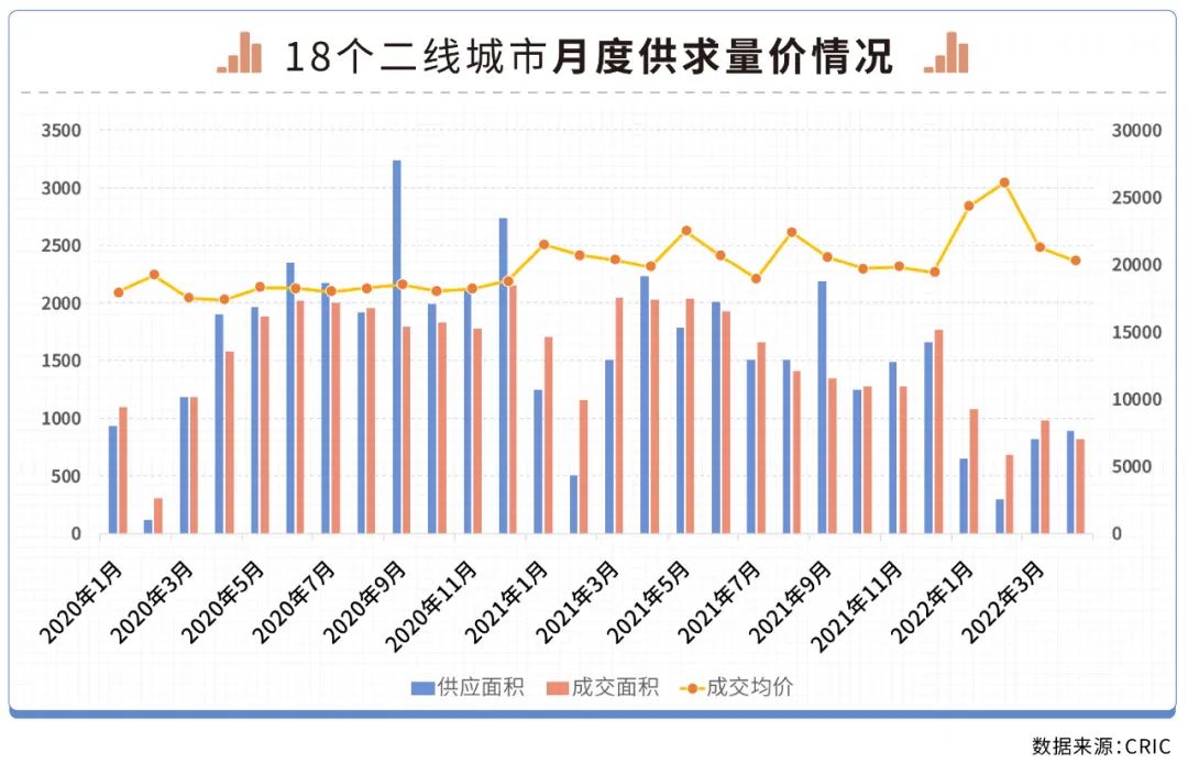 數據顯示,18個重點二線城市前4月新建商品住宅成交面積僅為3554萬平方米,較2021年同期近乎腰斬,下降比例達到49%,較2020年同期下降15%。
