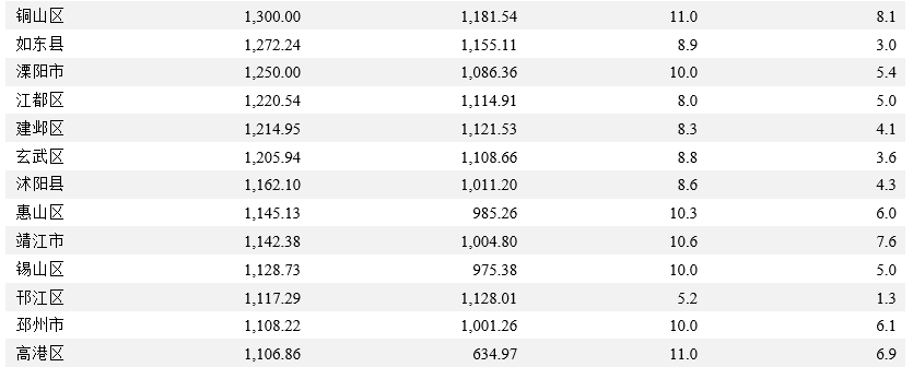 2021年除邗江區外,江蘇省其他各區縣GDP規模均有所提升,響水縣GDP增速下滑0.1個百分點。2021年江蘇省各區縣GDP規模大多處于增長狀態,其中昆山、江陰和張家港市GDP規模仍處于頭部位置,且2021年張家港GDP突破三千億大關,新吳區和宜興市則突破兩千億大關。但邗江區2021年GDP下滑10.72億元至1,117.29億元。GDP增速方面,除盱眙縣、沛縣、贛榆區和豐縣未獲得GDP增速外,2021年江蘇省大部分區縣GDP增速均高于2020年,但響水縣GDP增速下滑0.1個百分點至6.0%。