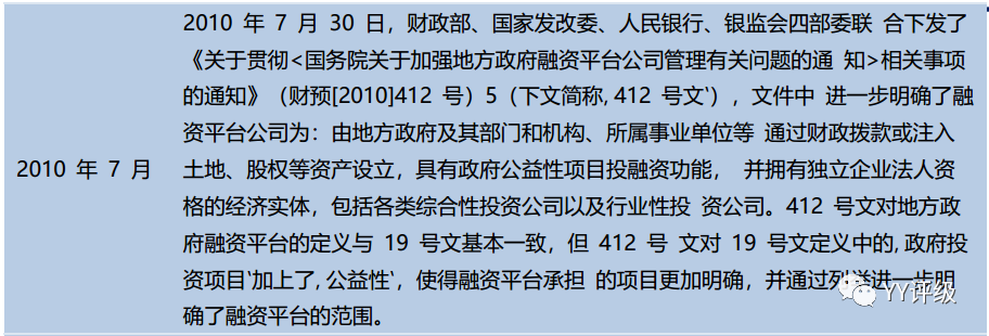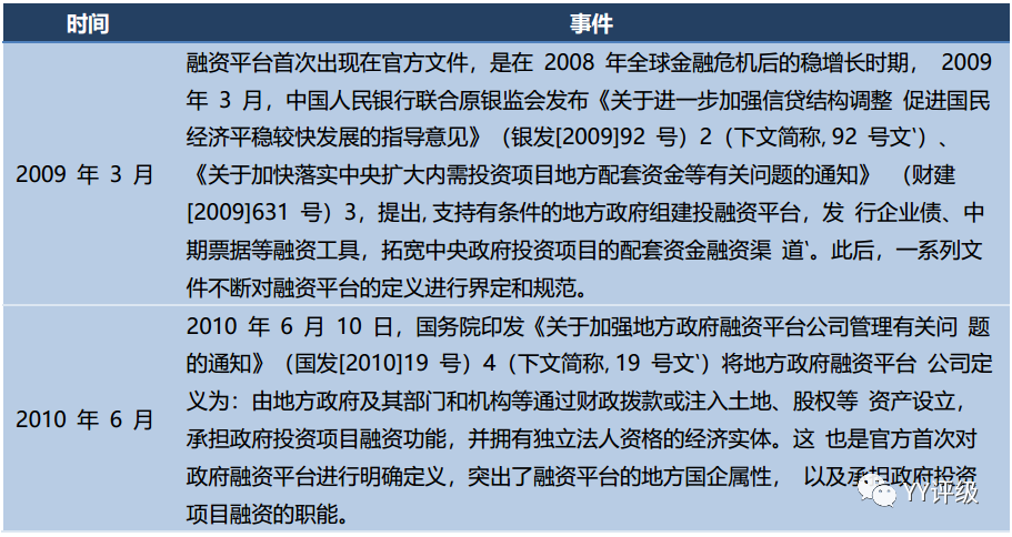 城投平臺的起始是由于地方財權(quán)和事權(quán)不匹配,地方政府為加強(qiáng)基礎(chǔ)設(shè)施建設(shè)投資而成立的,因?yàn)槠錇榈胤秸度谫Y服務(wù),也被稱作投融資平臺。最初融資平臺的概念主要突出其地方國企屬性,以及承擔(dān)政府投資項目融資的職能,之后政策強(qiáng)調(diào)融資平臺具有政府公益性項目投融資功能?公益性項目又進(jìn)一步完善成?公益性或準(zhǔn)公益性項目。一般而言將融資平臺是由地方政府及其部門和機(jī)構(gòu)等通過財政撥款或注入土地、股權(quán)等資產(chǎn)設(shè)立,承擔(dān)政府投資項目融資功能,并擁有獨(dú)立法人資格的經(jīng)濟(jì)實(shí)體。