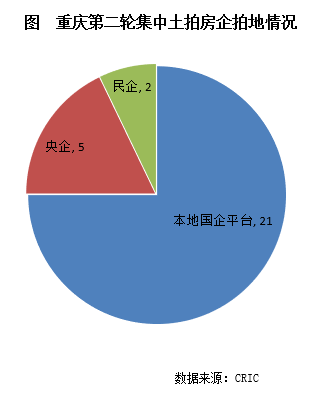 從競(jìng)得土地房企來看,首輪土拍中表現(xiàn)積極的龍湖、融創(chuàng)(拿地金額近百億)等房企表現(xiàn)均不積極、甚至未參拍,成交的大部分地塊均是土地國企平臺(tái)“兜底”的;除此之外,中海、中鐵二十局、葛洲壩等少數(shù)央企低價(jià)抄底。相比之下,民營企業(yè)參拍積極性明顯下挫。