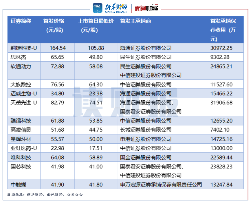 2022年以來(lái),由中信建投擔(dān)當(dāng)聯(lián)席主承銷商的國(guó)芯科技和軟通動(dòng)力在上市首日盤中一度跌破發(fā)行價(jià)。