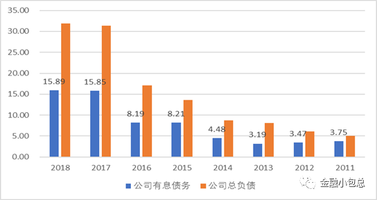 圖四:ST中新公司總負(fù)債和有息債務(wù)規(guī)模趨勢