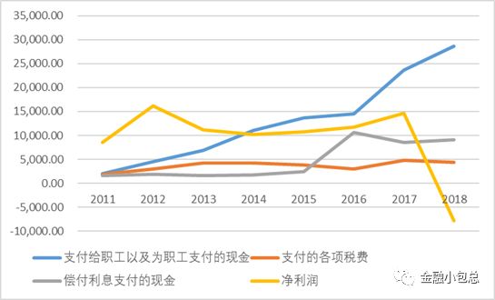 以ST中新為例,這五年來其凈利潤并沒有顯著提高,但各種顯性成本,如人工成本、各項(xiàng)稅費(fèi)和利息支出卻急劇增加,尤其是人工成本,ST中新用工成本從2011年的人均月薪2469元增長到了2018年的11613元,7年間增長了五倍,而其從事的電子業(yè)代工制造本身是毛利率極低的行業(yè),對成本非常敏感。