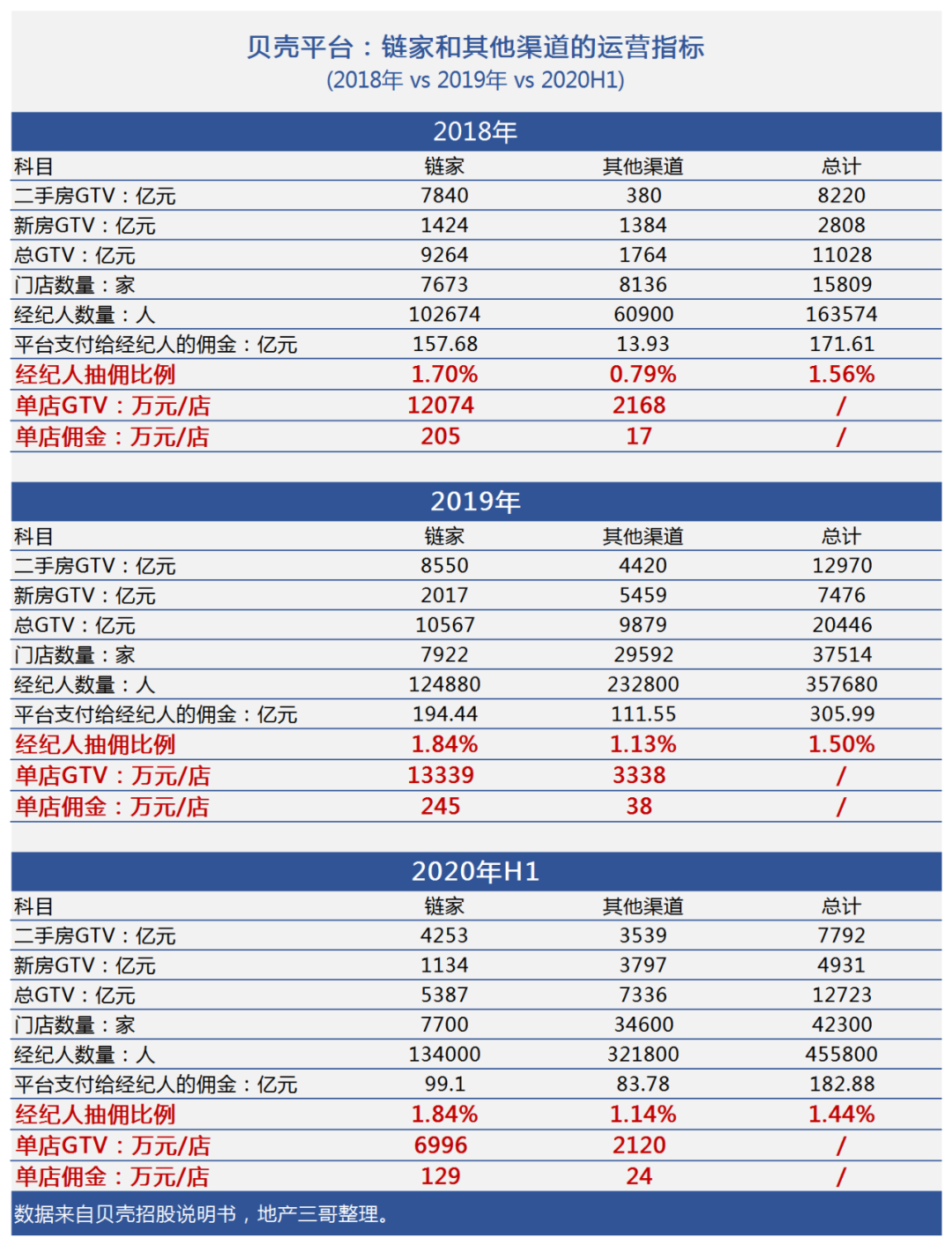 如果從傭金/GTV這一絕對量化指標(biāo)來看,貝殼平臺支付給內(nèi)部鏈家品牌的傭金比例顯然高于對其他渠道的。