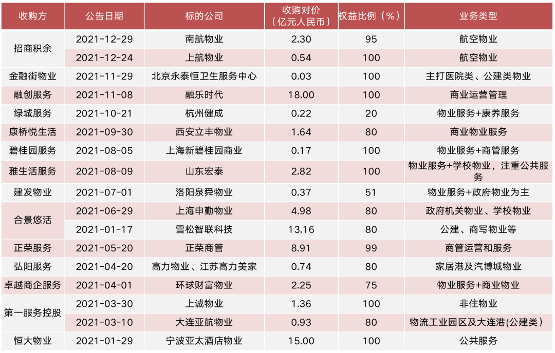 圖:2021年以來上市物企在增值服務領域收并購事項一覽