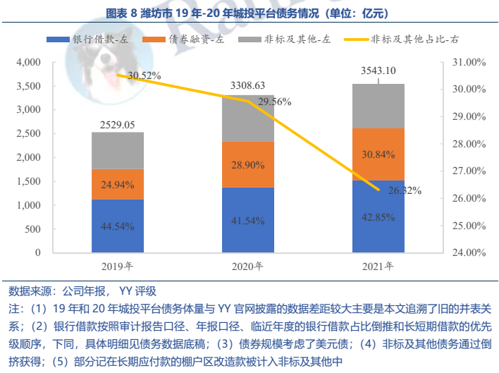 (1)區域金融資源并不弱(21年末金融機構存款余額1.12萬億元,省內排名第三),但非標融資占比很高,21年末非標融資占26.32%,好在21年已經有一定壓降。