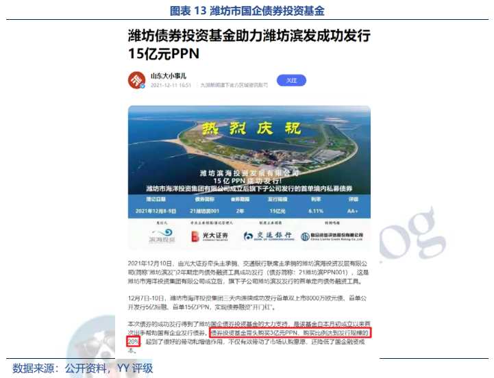 濰坊市政府也感受到了市場的擔憂,在21年10月召開了投資者大會,試圖提振市場信心,提出設立50億元國企融資增信計劃和80億元國企債券投資基金的舉措,并很快在2021年12月做出了具體行動。