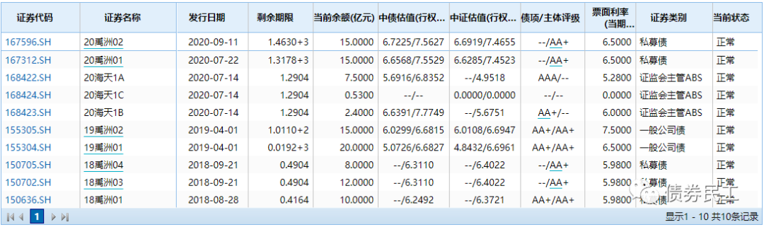 雅居樂集團為香港上市公司(股票代碼3383.HK),實際控制人為陳卓賢為代表的陳氏家族,國內主體信用評級為AAA。目前在國內存續兩只私募債券,總規模30億元;其余債券均為境外債券。