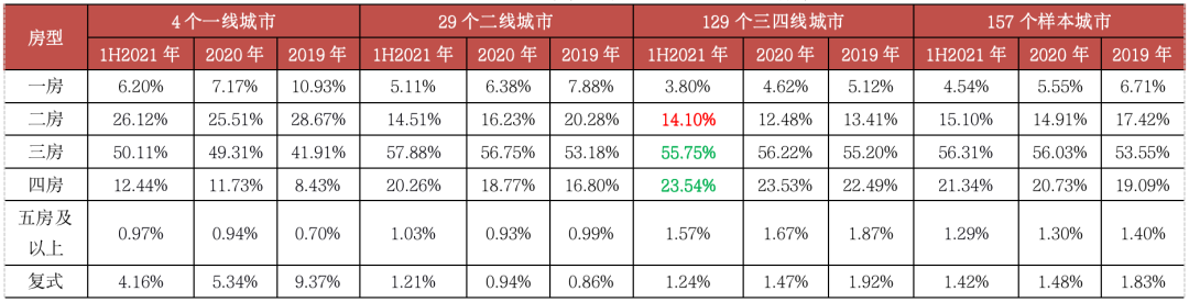 2021年上半年,改善性需求持續釋放,三房依然穩居成交主力。