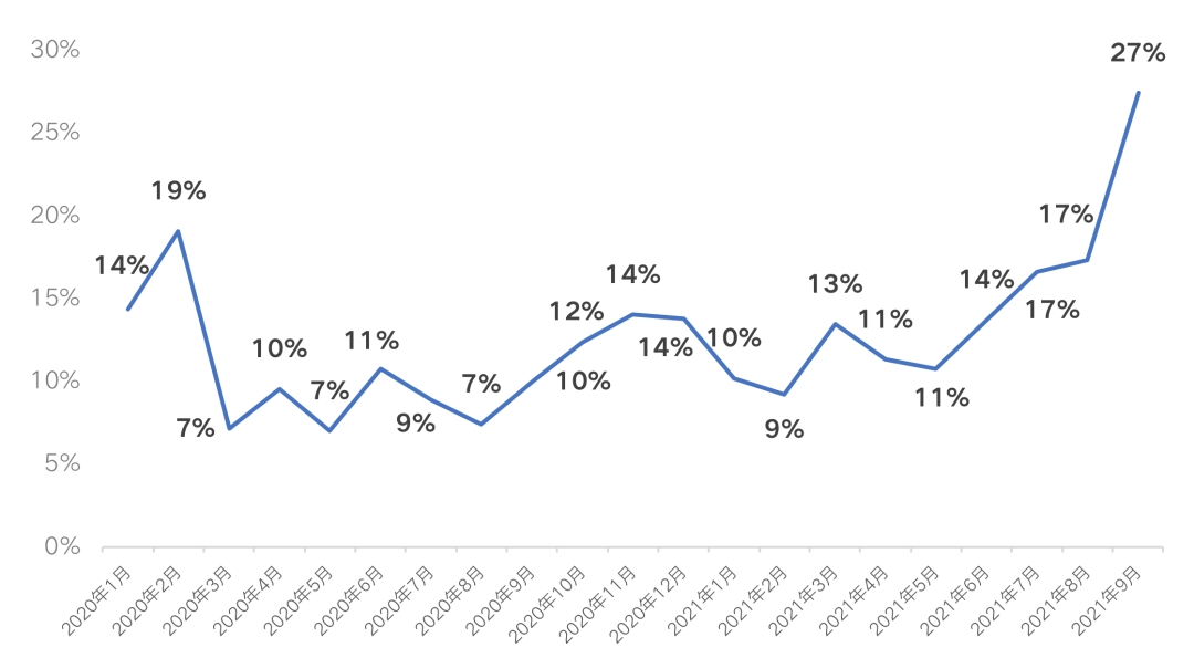 圖:CRIC監測城市經營性用地溢價率走勢圖