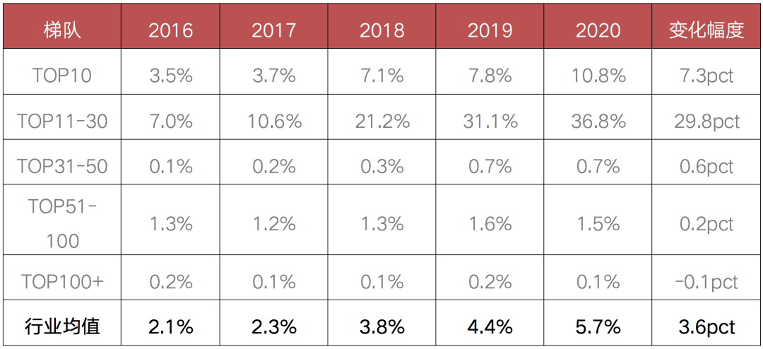 表:2016-2020年不同規(guī)模梯隊房企的