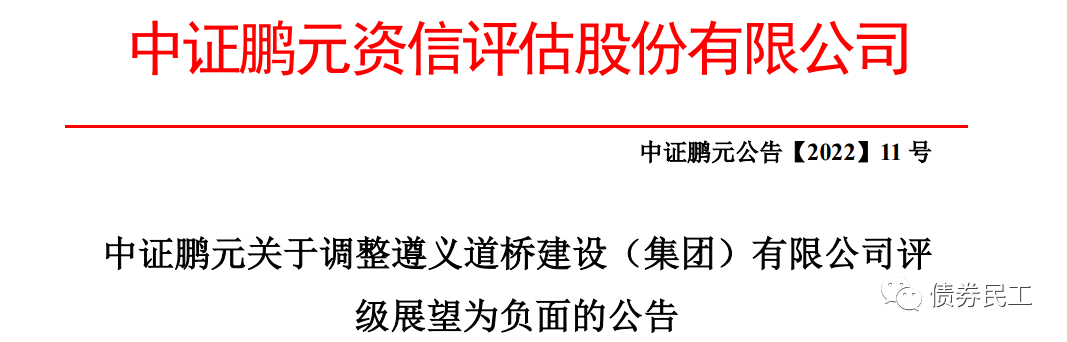 根據中證鵬元資信評估股份有限公司披露的公告,遵義道橋建設(集團)有限公司(以下簡稱“遵義道橋”)的評級展望調整為負面。這份報告的落款日是2022年1月10日。這是2022年以來,繼蘭州市城市發展投資有限公司和蘭州建設投資(控股)集團有限公司之后,第三家評級展望被調整為負面的AA+城投公司。