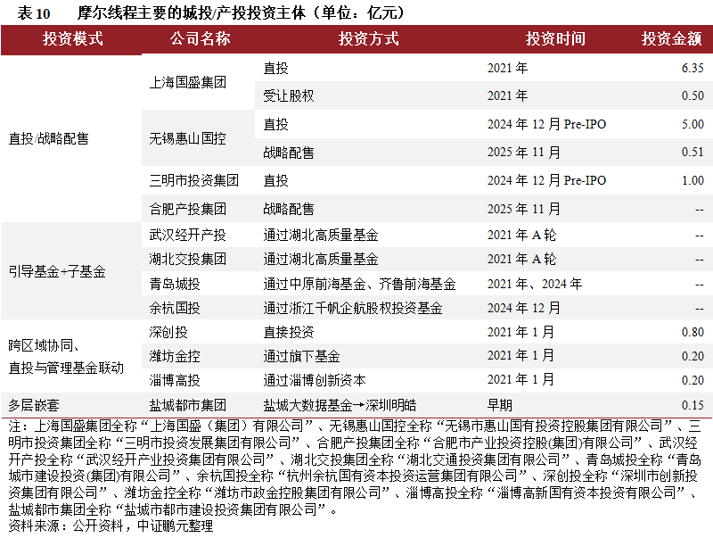 摩爾線程、沐曦股份上市,哪些城投/產投精準押注?城投/產投系產業投資基金主要通過直接投資、戰略配股、政府引導基金+子基金、跨區協同、多層嵌套等方式參與摩爾線程、沐曦股份的投資。上海、南京浦口、無錫惠山、四川省、長沙湘江等區域城投/產投均有押注。上海、無錫等多地政府通過投資成功吸引摩爾線程設立分支機構,促進產業集群形成;上海、南京、長沙、成都、綿陽通過投資成功將沐曦股份引入本地,形成GPU產業集群。南京浦口地區投資最早,政府引導基金回報率近66倍,城投直接投資回報率約25倍。