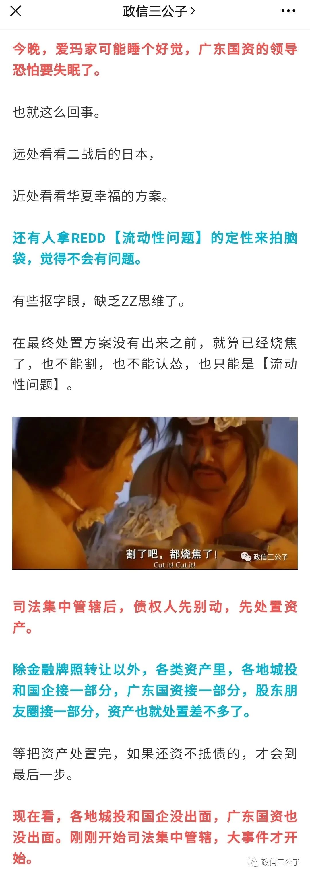 各地城投和國企接一部分,廣東國資接一部分,朋友圈接一部分,資產也就處置差不多了。