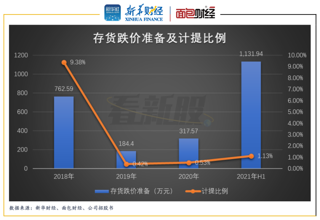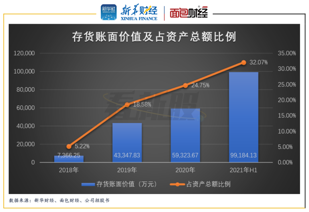 報告期內(nèi),螢石網(wǎng)絡(luò)的存貨賬面價值持續(xù)大幅攀升,由2018年7366.25萬元上升至2021年上半年末的99184.13萬元。同期,存貨賬面價值占公司資產(chǎn)總額的比例由5.22%上升至32.07%。
