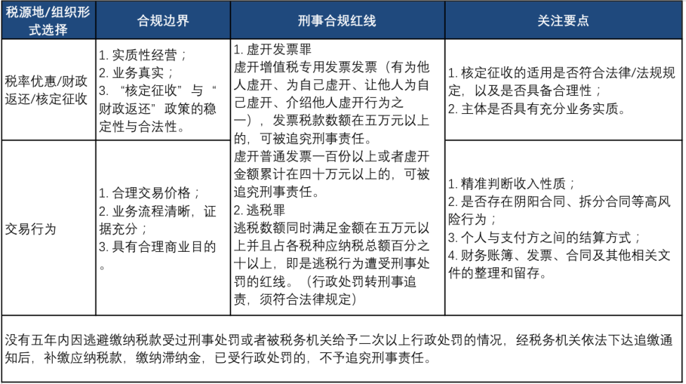 結合目前直播電商賽道中常用的個稅成本控制模式,我們建議企業/個人在考慮建構/重塑個稅合規結構時,應嚴格遵循以下邊界: