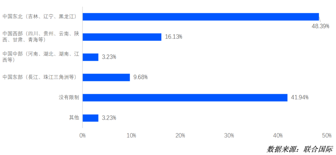 大多數(shù)受訪者表示他們不會(huì)投資于中國(guó)某些地區(qū)的債券。48.4%的受訪者不會(huì)考慮投資東北地區(qū),16.1%的受訪者不會(huì)考慮投資中國(guó)西部地區(qū)。但許多受訪者(41.9%)表示,他們?cè)诘赜蚍矫鏇]有投資限制。1名受訪者明確提到不會(huì)考慮投資天津。(見附表3)