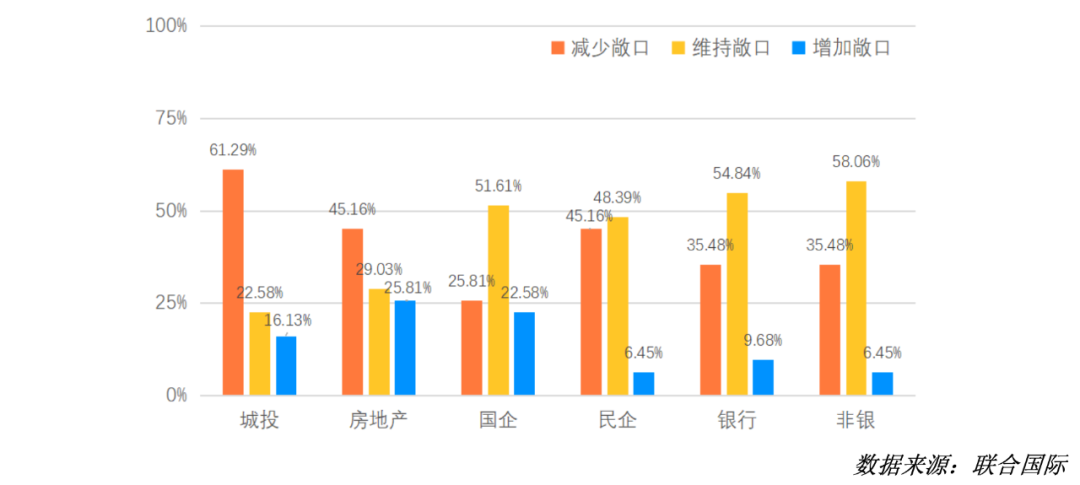 對(duì)于高收益級(jí)債券,大多數(shù)受訪者不打算增加任一行業(yè)的敞口。在城投和房地產(chǎn)行業(yè)方面,大多數(shù)受訪者傾向減少其風(fēng)險(xiǎn)敞口(見附表6)。