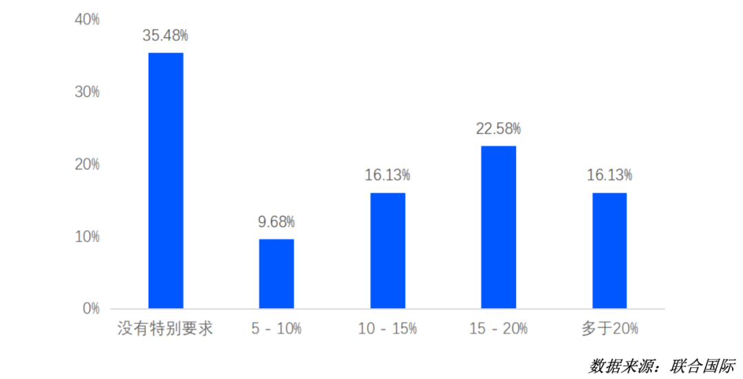 如果受訪者要回歸中國(guó)房地產(chǎn)高收益美元債券市場(chǎng),不到 10% 的受訪者只要求適中水平的年回報(bào)率,為 5-10%。理所當(dāng)然的有 54.8% 的人要求高回報(bào)率(超過 10%)。然而,他們中的一大部分人對(duì)要求的回報(bào)率沒有特別偏好(見附表9)。