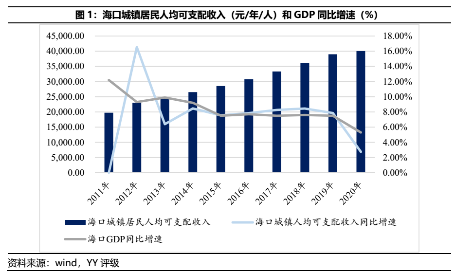 近年海口的GDP增速與城鎮居民人均可支配收入位列全國平均水平之上,但由于市內除了觀光業和省外大量移居等趨勢外,自貿島及其他產業并沒有帶來太大的助益,導致可支配收入增速趨緩。