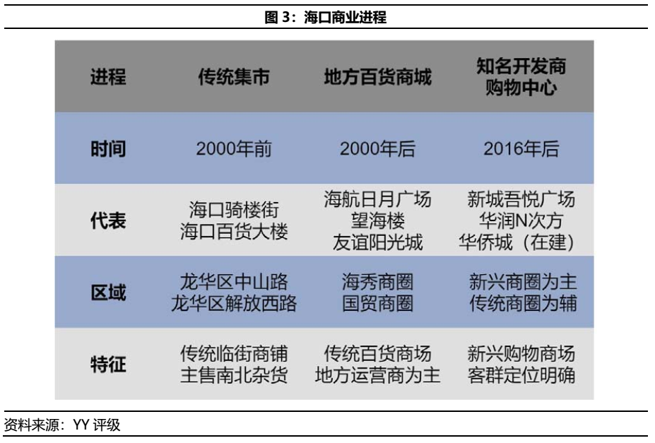 不同于一線城市核心物業,三線城市的自持物業往往被視為開發商勾地手法下的配套產物,多為住宅項目的邊角料,不具備價值。但隨著新城和龍湖等開發商在三四線城市的大量自持物業開盤,此類區域的商業競爭格局與策略亦勢必探討之,關注其定價合理性。因而借春節期間得以在海口實地調研,觀察市內商業物業情況。