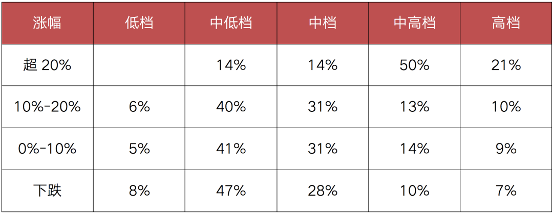 注:高檔>2倍房價中位數;中高檔>1.5倍房價中位數;中檔>1倍房價中位數;中低檔>0.5倍房價中位數;低檔≤0.5倍房價中位數