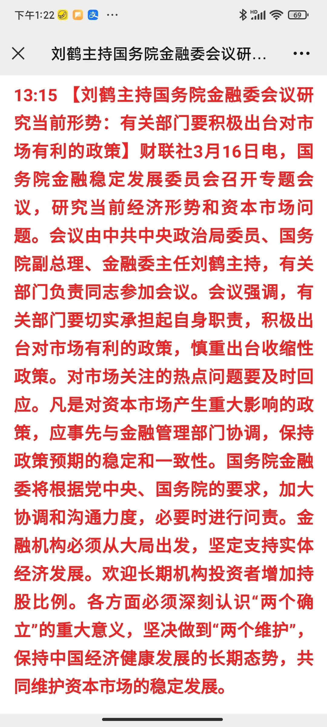 最近,俄烏戰(zhàn)爭(zhēng)、疫情反撲、中美脫鉤,對(duì)于眼下的時(shí)局而言,可能是我們一輩子都未曾遇到的艱難。在如此艱難的時(shí)刻,房地產(chǎn)不該躺在ICU的病房里,是不是該好好地考慮如何讓它盡快站起來(lái),成為穩(wěn)住經(jīng)濟(jì)基本盤的支柱,成為穩(wěn)定社會(huì)的穩(wěn)定器。寫到這時(shí),炸天團(tuán)突然被一條消息刷屏了:劉鶴主持金融委會(huì)議研究當(dāng)前形勢(shì)。積極出臺(tái)對(duì)市場(chǎng)有利的政慎重出臺(tái)收縮性政策