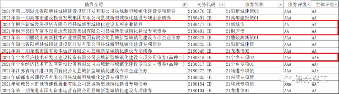 1、雖然發(fā)行指引規(guī)定“自身信用發(fā)行本專項企業(yè)債券”,事實上將國家發(fā)改委“區(qū)縣級平臺發(fā)行企業(yè)債券債項評級需達到AA+及以上”的條件突破了。但是在實踐過程中,為了確保債券審核通過和發(fā)行的效率,一般還是需要增加信用擔(dān)保措施。2021年共發(fā)行了13只縣城新型城鎮(zhèn)化專項債券,其中只有3只沒有增信措施,占比只有23.08%。其他10只縣城新型城鎮(zhèn)化專項債券均有擔(dān)保增信,且債項評級均增信到了AAA。
