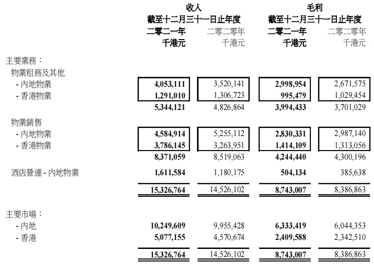 集團(tuán)內(nèi)地已落成綜合用途投資物業(yè)資產(chǎn)組合包括辦公室、零售、出租公寓和酒店,產(chǎn)生收入同比增長(zhǎng)21%至56.6 億港元,毛利同比增長(zhǎng)14%至35億港元。
