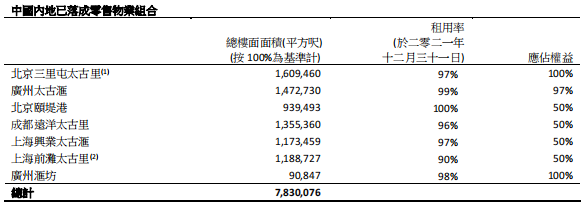 截至至2021年12月底,在內(nèi)地之自占已建成收租物業(yè)組合增加至約810萬(wàn)平方呎。