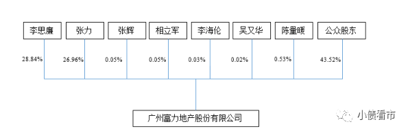 從股權結構看,李思廉和張力分別持有富力地產28.97%和27.5%股權,二人是共同創始人為公司實際控制人。