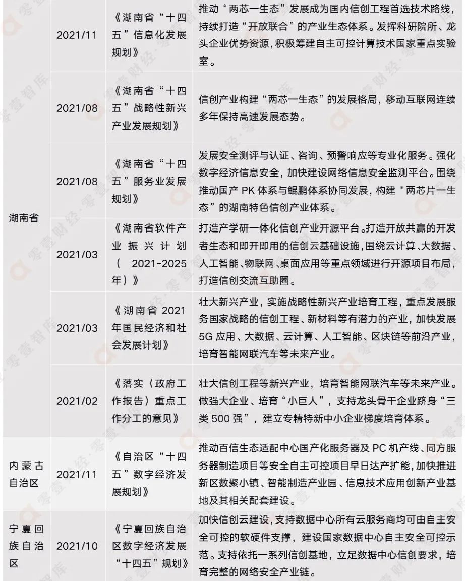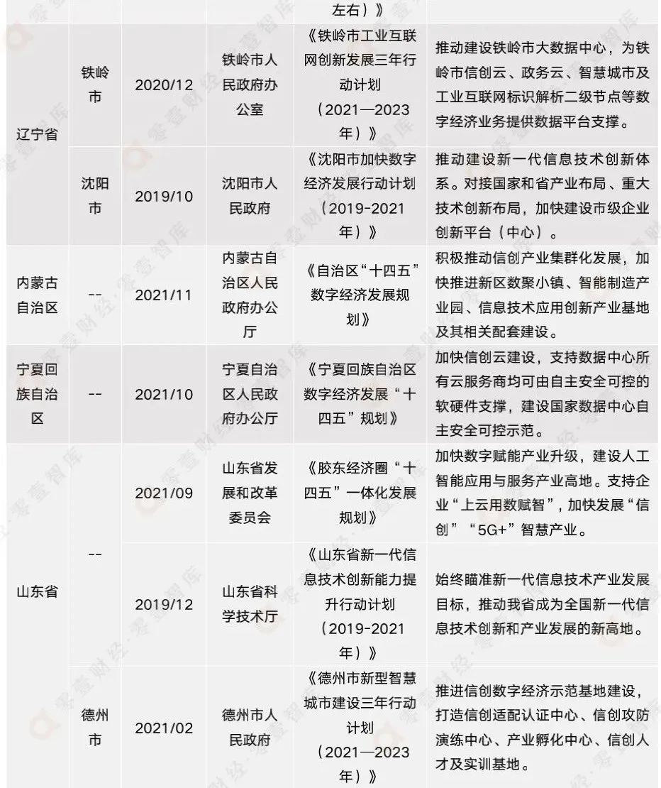 附錄二:全國(guó)各省市信創(chuàng)相關(guān)政策匯總(截至2021年12月)