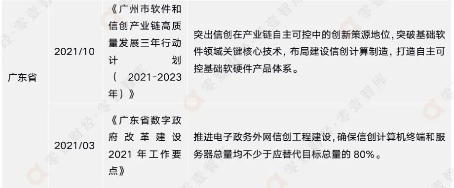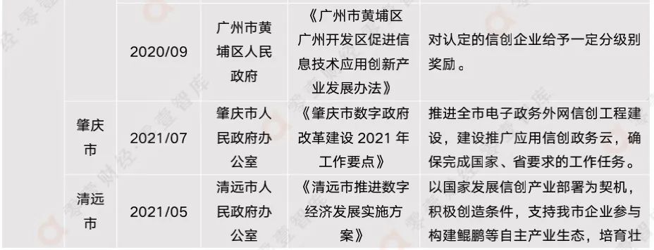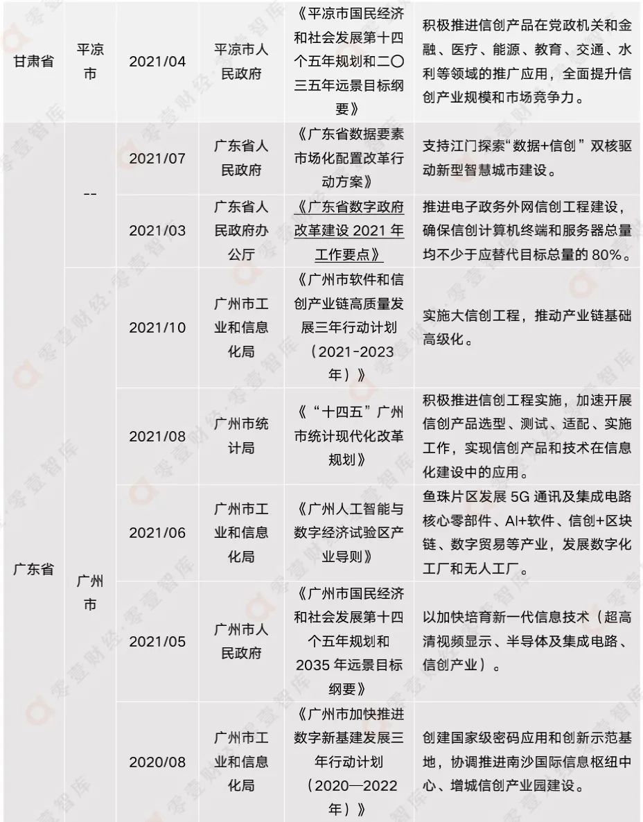 雖然信創(chuàng)產(chǎn)業(yè)如今大熱,但鮮有政府出臺(tái)信創(chuàng)專項(xiàng)政策,目前僅有廣州市工業(yè)和信息化局出臺(tái)的《廣州市軟件和信創(chuàng)產(chǎn)業(yè)鏈高質(zhì)量發(fā)展三年行動(dòng)計(jì)劃(2021-2023年)》。信創(chuàng)產(chǎn)業(yè)的發(fā)展并不久遠(yuǎn),相信隨著信創(chuàng)的進(jìn)一步發(fā)展,其重要性會(huì)更加凸現(xiàn),政府的關(guān)注度和重視程度也會(huì)大幅提高。