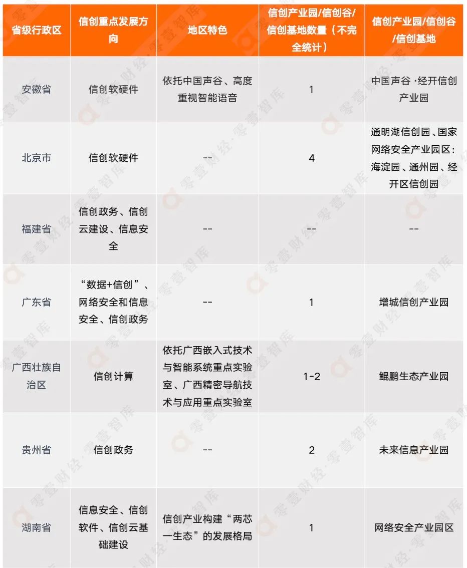 隨著信創(chuàng)發(fā)展到了一定階段,各地政府對(duì)當(dāng)?shù)匦艅?chuàng)產(chǎn)業(yè)發(fā)展要求以及路線不可避免地發(fā)生了改變。根據(jù)各地方政府近兩年來(lái)發(fā)布的最新的信創(chuàng)相關(guān)政策文件可以看出,以浙江省、北京市、四川省為代表的省級(jí)行政區(qū)因地制宜,明確提出在當(dāng)?shù)亟ㄔO(shè)信創(chuàng)基地,依托當(dāng)?shù)仄髽I(yè)、科研院所等優(yōu)勢(shì),在當(dāng)?shù)亟⑿艅?chuàng)生態(tài),避免在信創(chuàng)發(fā)展中后期可能存在的受制于人的情況。以天津市、山東省、安徽省為代表的省級(jí)行政區(qū)則加速發(fā)展信創(chuàng)硬軟件,推進(jìn)信創(chuàng)、人工智能、5G+等多熱門領(lǐng)域協(xié)同發(fā)展發(fā)展,力求在信息技術(shù)領(lǐng)域全方面、立體化發(fā)展。