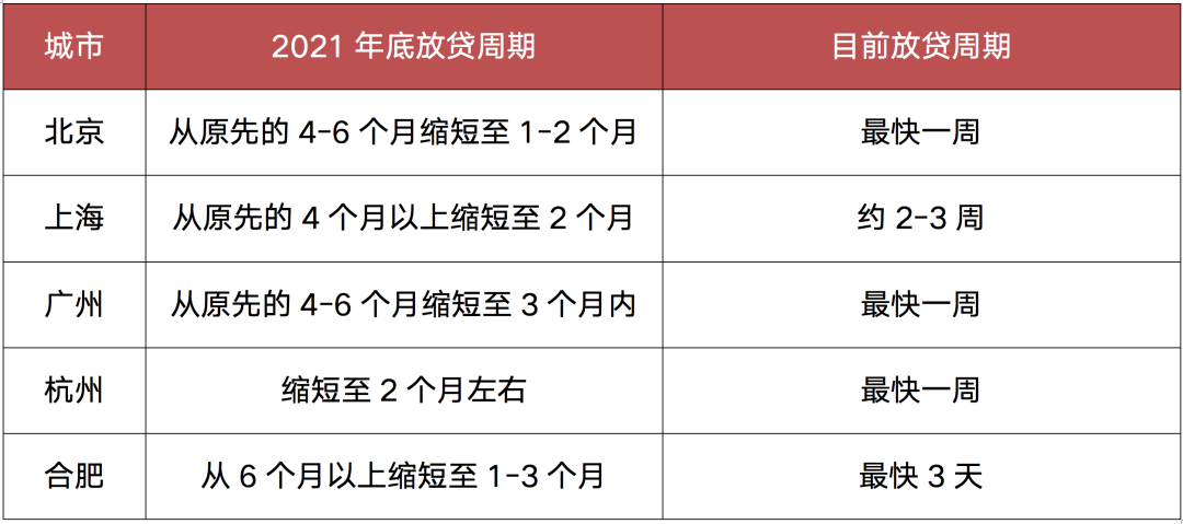 表:部分熱點(diǎn)城市放貸周期情況