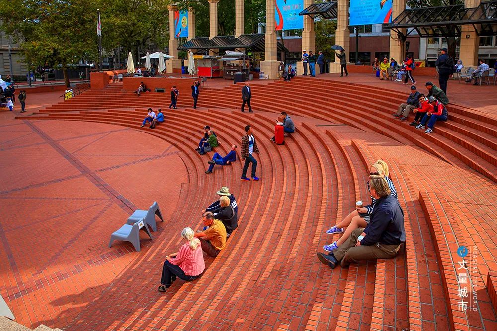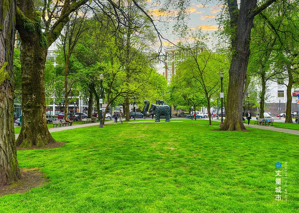 這一線性綠化帶,不僅便捷、易達,而且更具形象展示力,盡頭的波特蘭州立大學(xué)及兩側(cè) 的波特蘭藝術(shù)博物館、俄勒岡歷史學(xué)會等各種博物館和文物古跡,構(gòu)成了波特蘭秩序感和展示性極強的波特蘭文化中心。