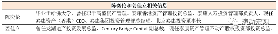 (1)泰康系需向陽光城集團派駐兩名董事,后者董事總數(shù)調(diào)整為12人。陳奕倫(泰康人壽董事長陳東升之子)和姜佳立(泰康資產(chǎn)管理不動產(chǎn)股權投資部投資總監(jiān))正是泰康系派駐的兩名董事。