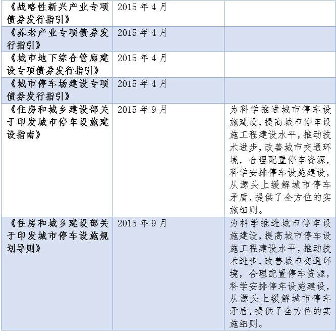 為解決共需矛盾,國家出臺了一些列主動調控的手段促進停車場產業的發展,鼓勵社會資本通過PPP參與立體停車項目、鼓勵發行停車場專項債,旨在通過多元化的手段來滿足日漸增長的停車需求。