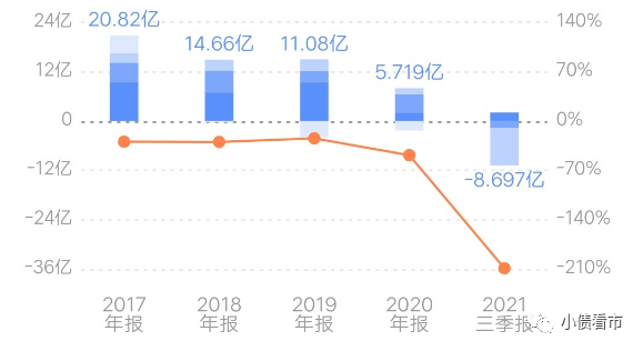2021年前三季度,中天金融實現營收223.23億元,實現歸母凈利潤-8.7億元,同比減少208.67%,實現扣非歸母凈利潤-10.03億元。