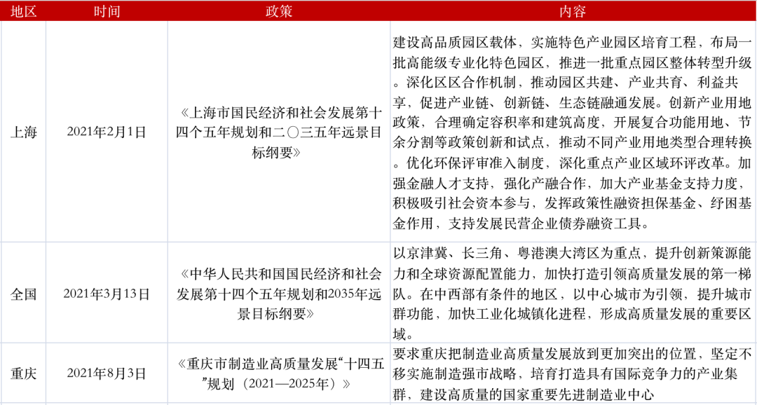 2021年以來部分產業地產相關政策