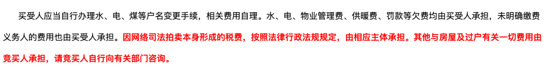 另外關于稅費以及上述新聞中相關物業欠費的繳納,法院公告中不會顯示具體的金額,這個時候需要買受人提前準備,做好盡調,計算好購房成本及出價預算再進行參拍。