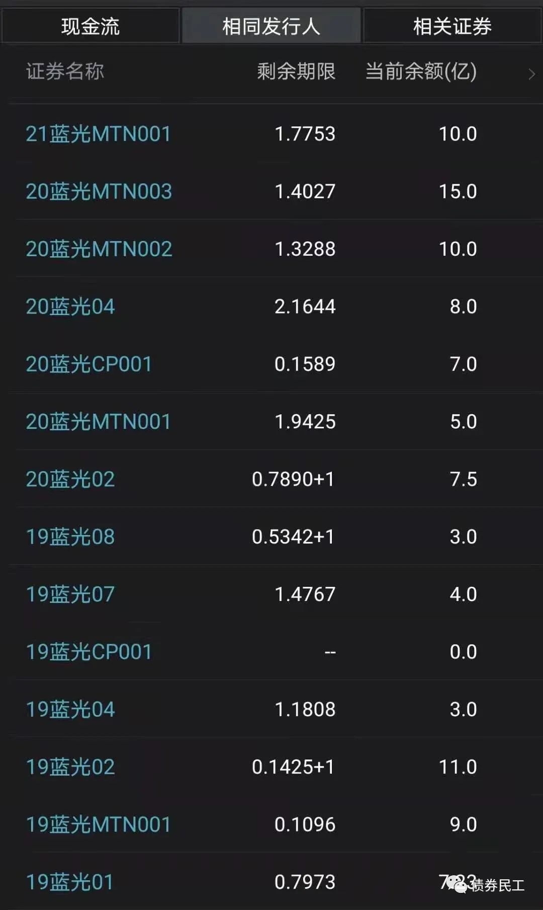根據公開信息,“19藍光MTN001”的存續債券金額9億元,發行票面利率為7.5%,到期日是2021年7月11日(因周末原因順延至7月12日)。藍光發展最近一次的債券是“21藍光MTN001”,債券起息日是2021年3月10日。藍光發展目前國內信用債券市場存續債券13只,存續金額74.23億元。而此前,據媒體報道藍光發展被曝部分非標產品逾期,旗下多只債券頻繁異動。