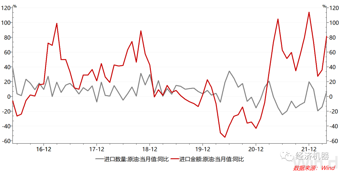 圖4、原油進(jìn)口額和進(jìn)口量:當(dāng)月同比
