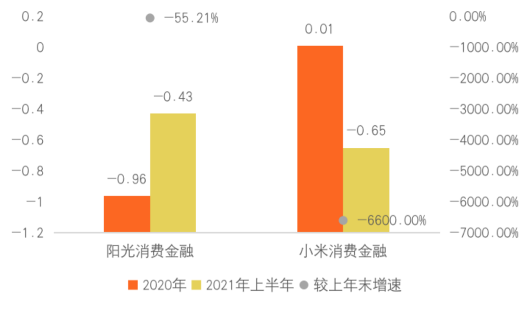圖 1:2021年上半年陽(yáng)光消費(fèi)金融與小米消費(fèi)金融